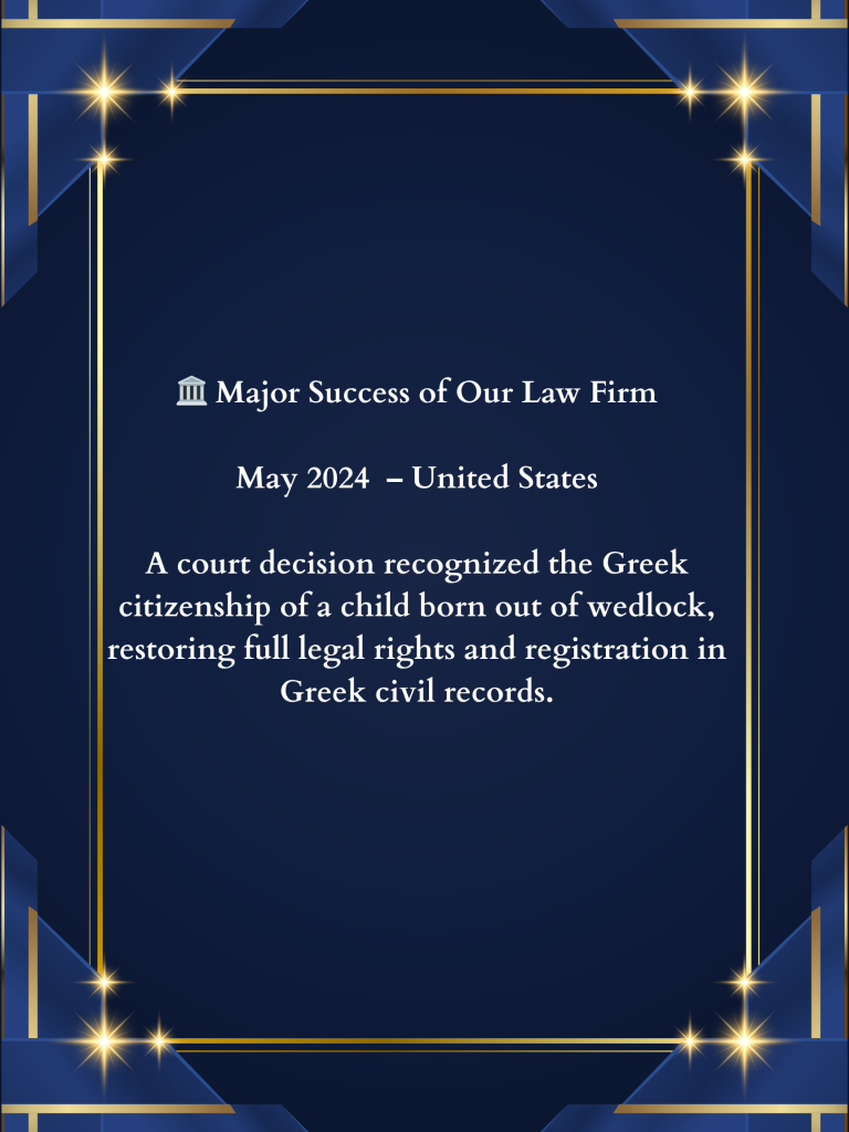 Court recognized the Greek citizenship of a child born out of wedlock, restoring full legal rights.