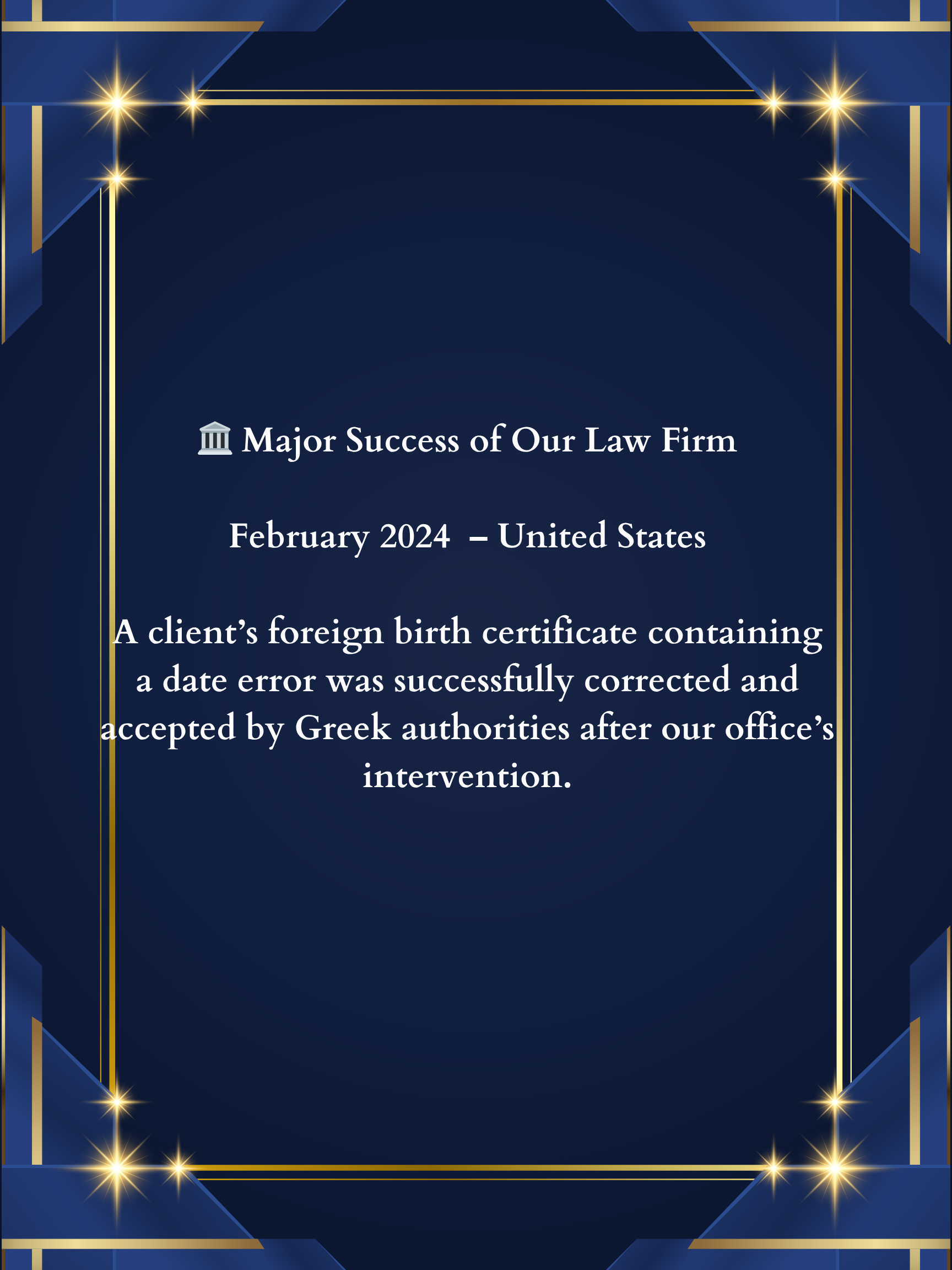 Corrected a date error on a foreign birth certificate and achieved acceptance by Greek authorities.