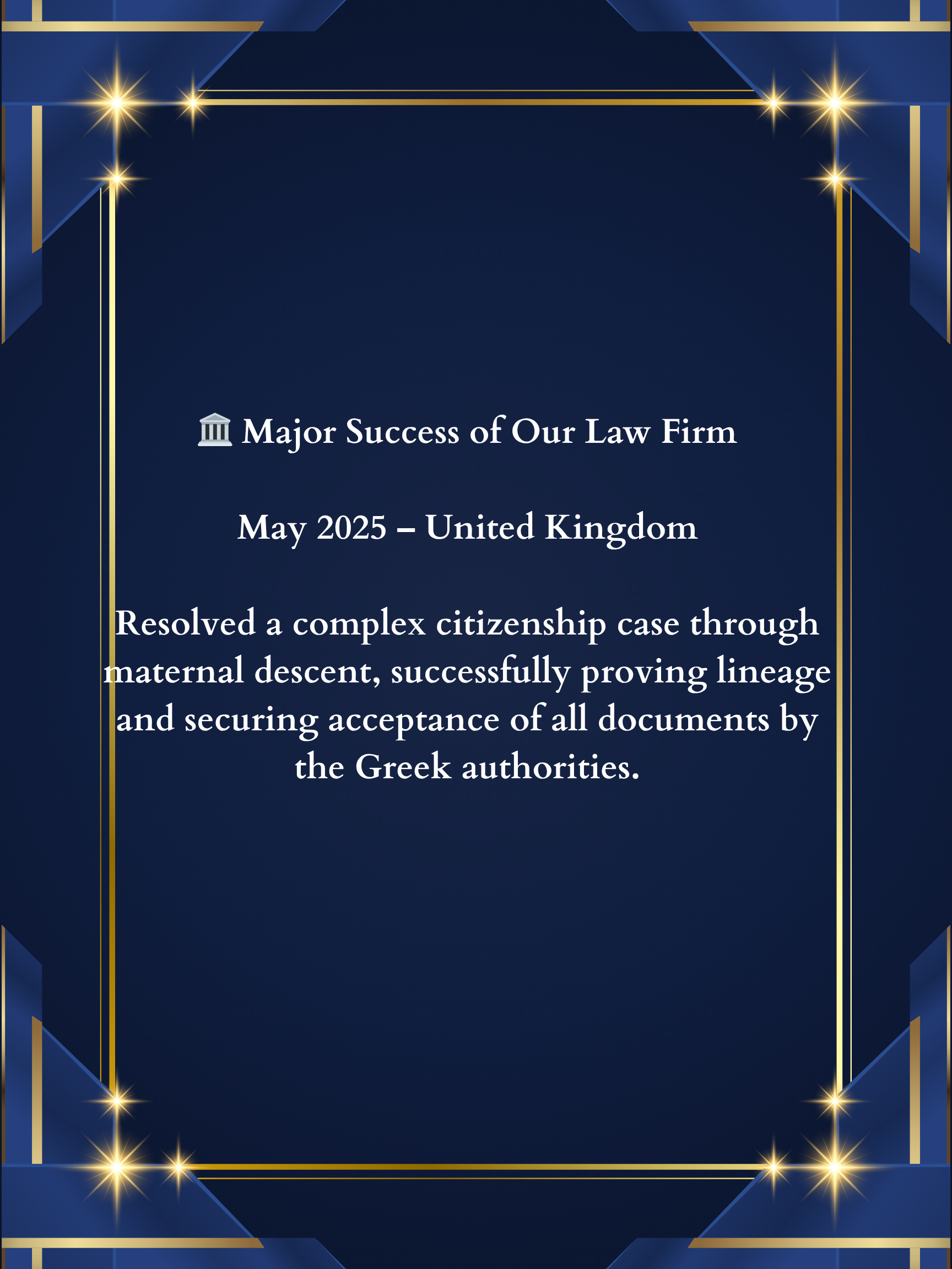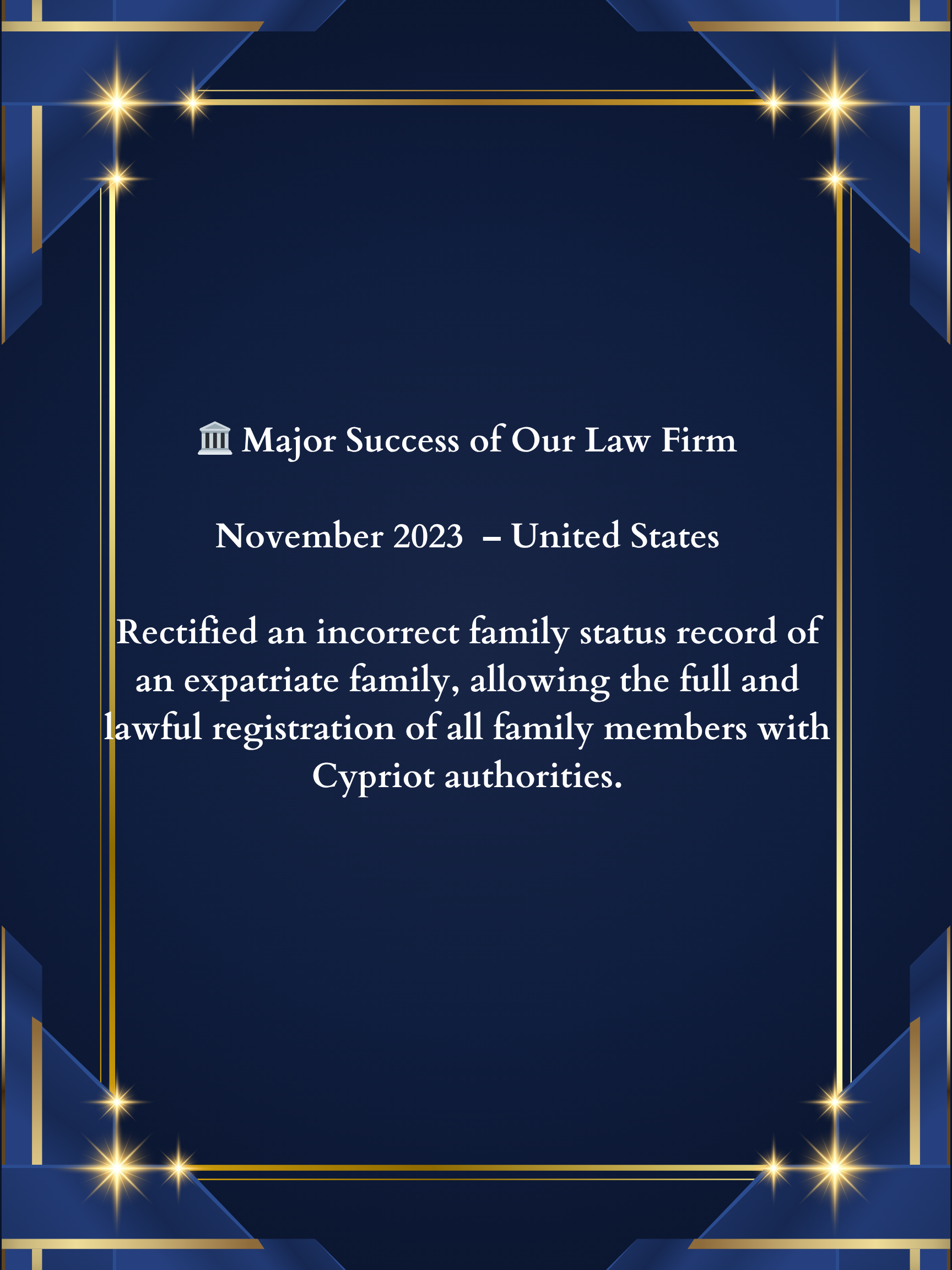 Achieved official recognition of Cypriot citizenship through documented ancestral descent.