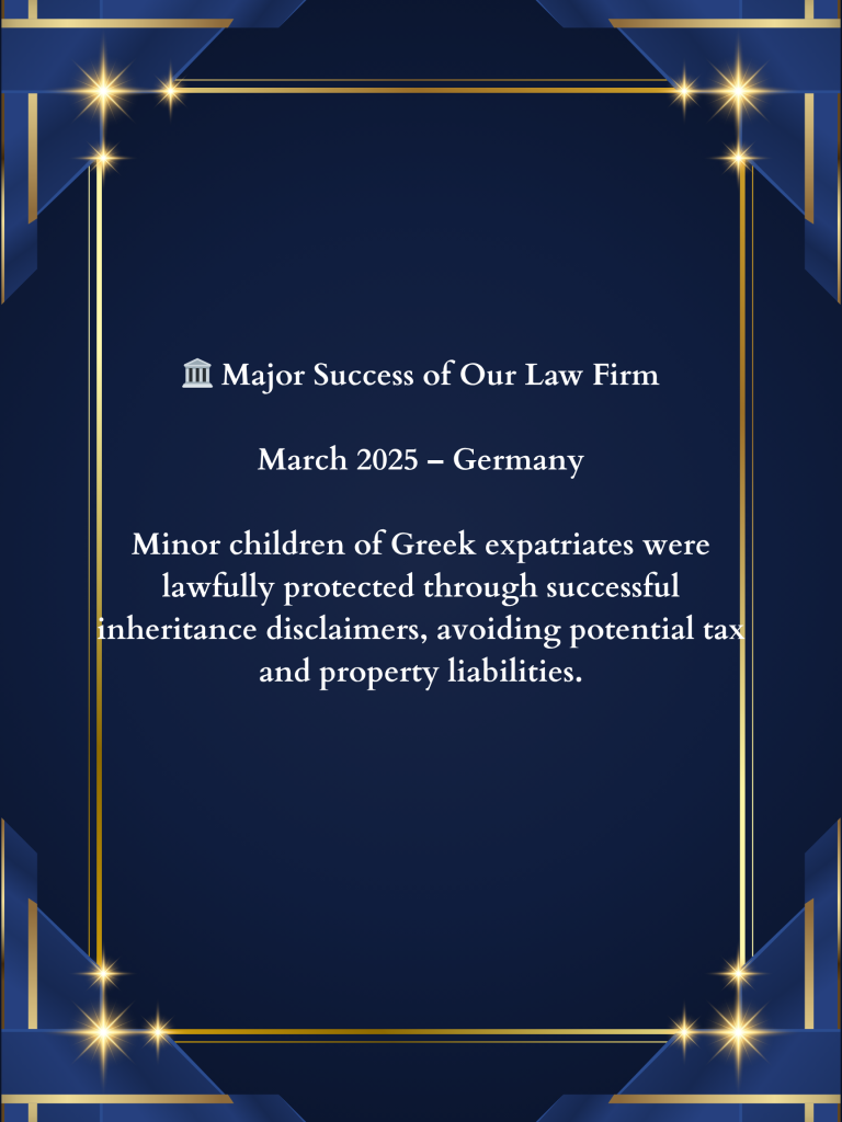 Minor children of Greek expatriates were lawfully protected through inheritance disclaimers, avoiding tax and property liabilities.
